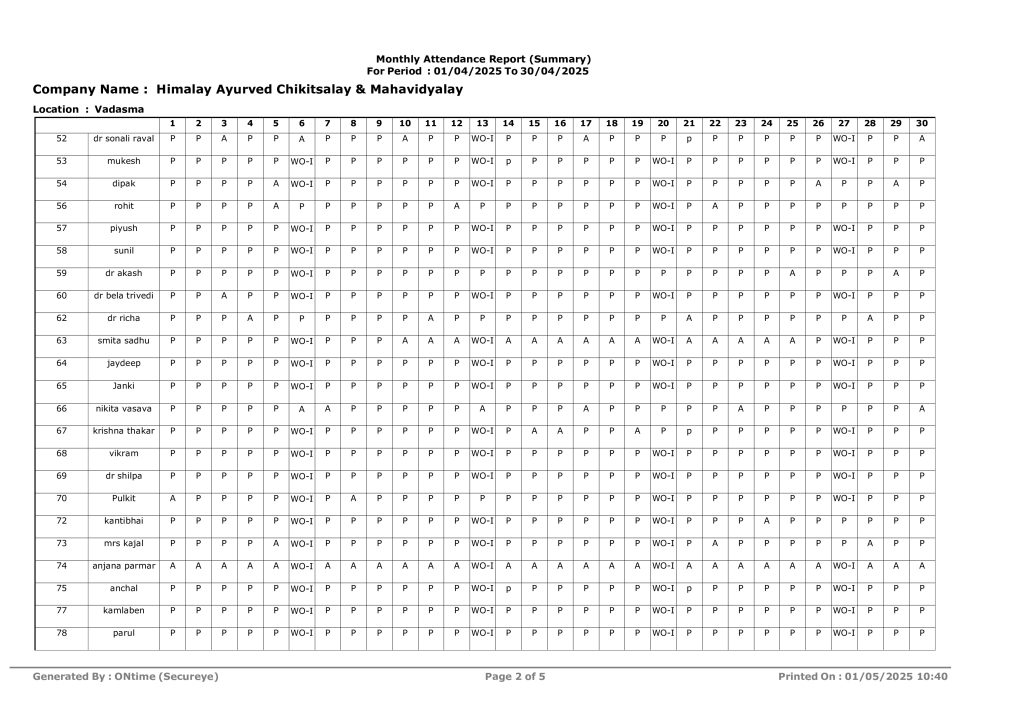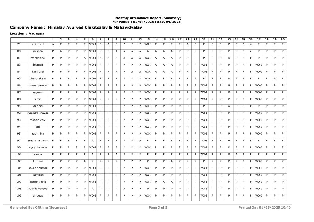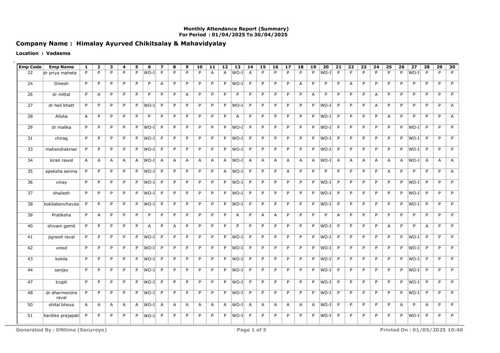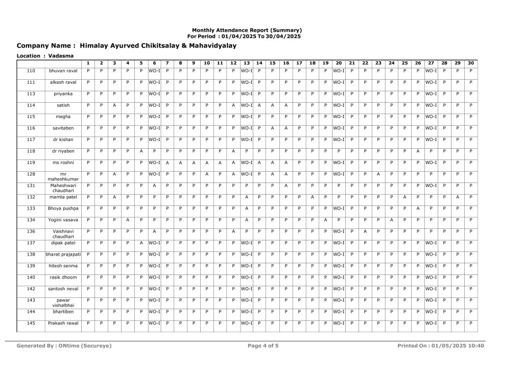 Monthly Attendance Report For Period (01/04/2025 To 30/04/2025)