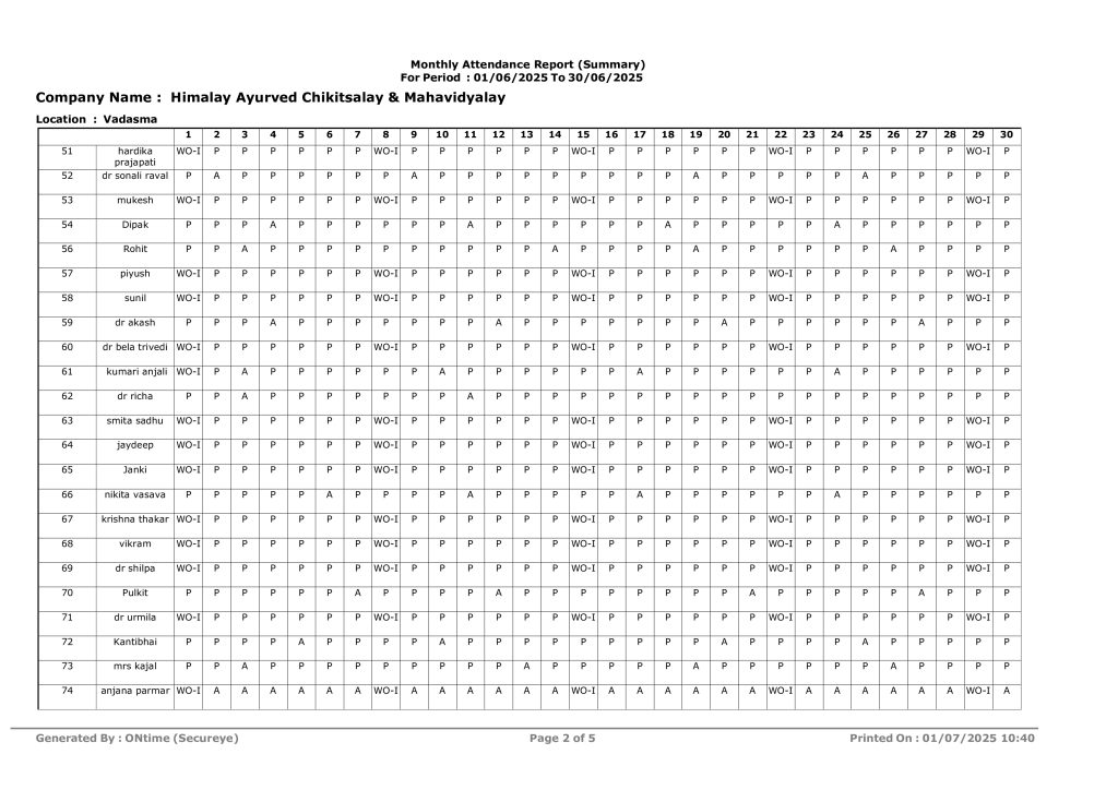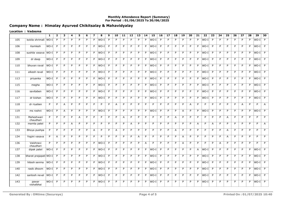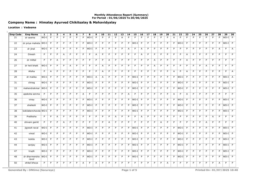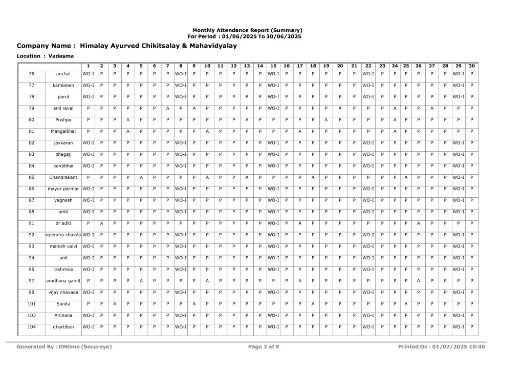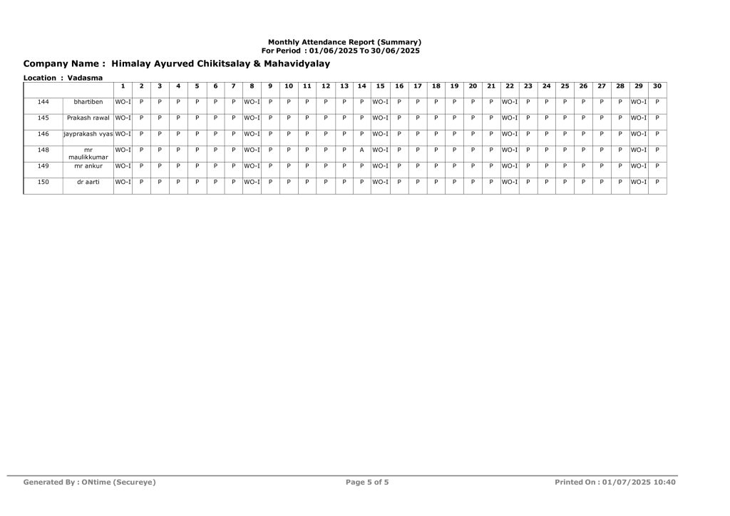 Monthly Attendance Report For Period (01/06/2025 To 30/06/2025)