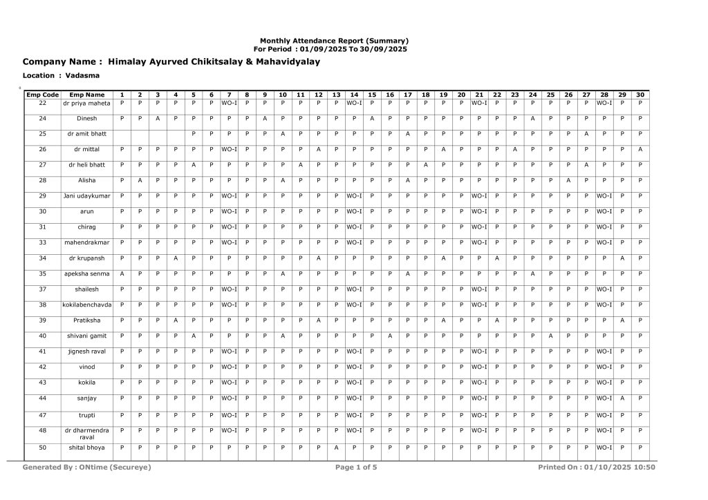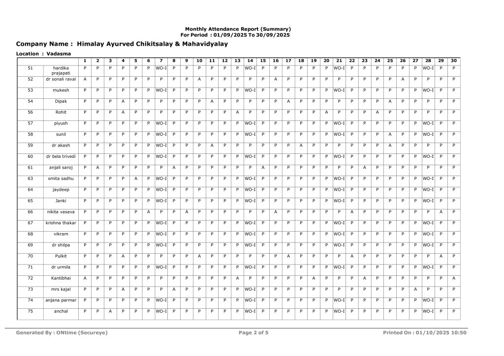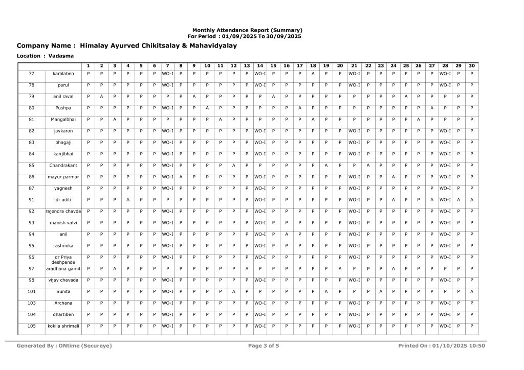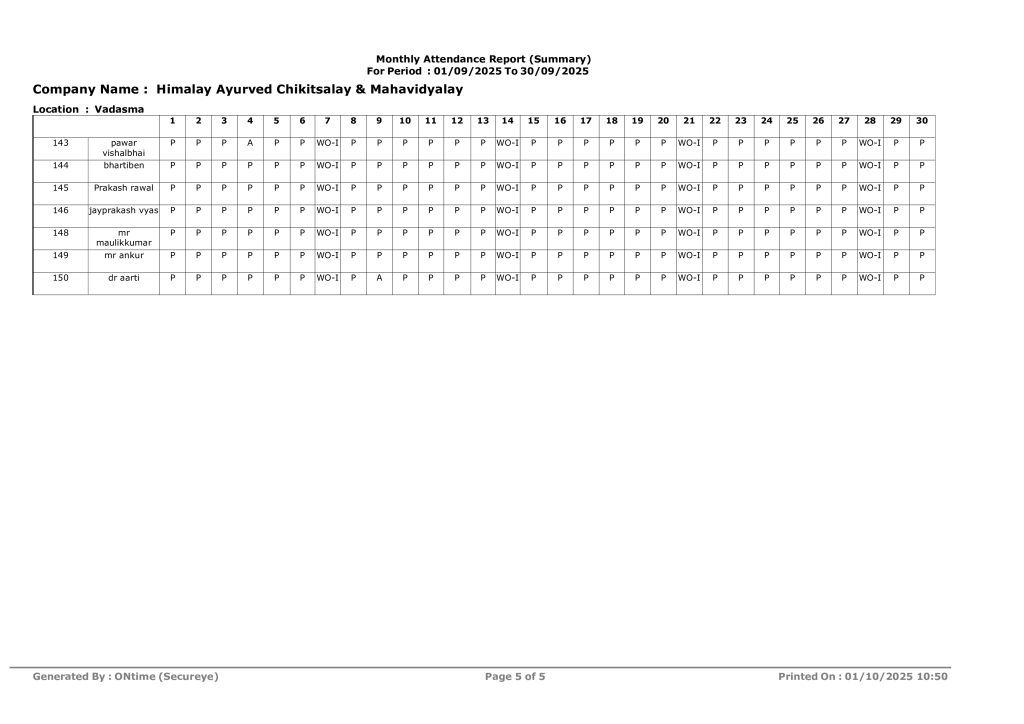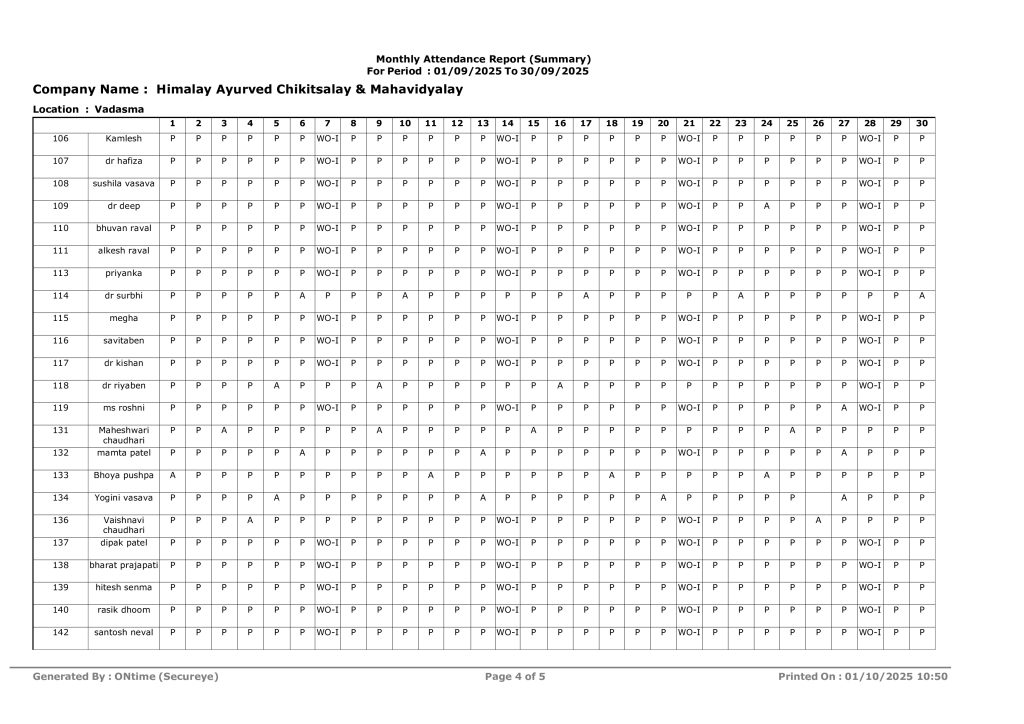Monthly Attendance Report For Period (01/09/2025 To 30/09/2025)